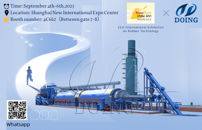 From September 4th to 6th, 2023, the 21st International Exhibition on Rubber Technology will be held at the Shanghai New International Expo Center. As a representative and leading pyrolysis plant manufacturer in the field of rubber recycling technology that has attracted much attention, Henan Doing Company sincerely invites everyone to gather at booth 4C662.